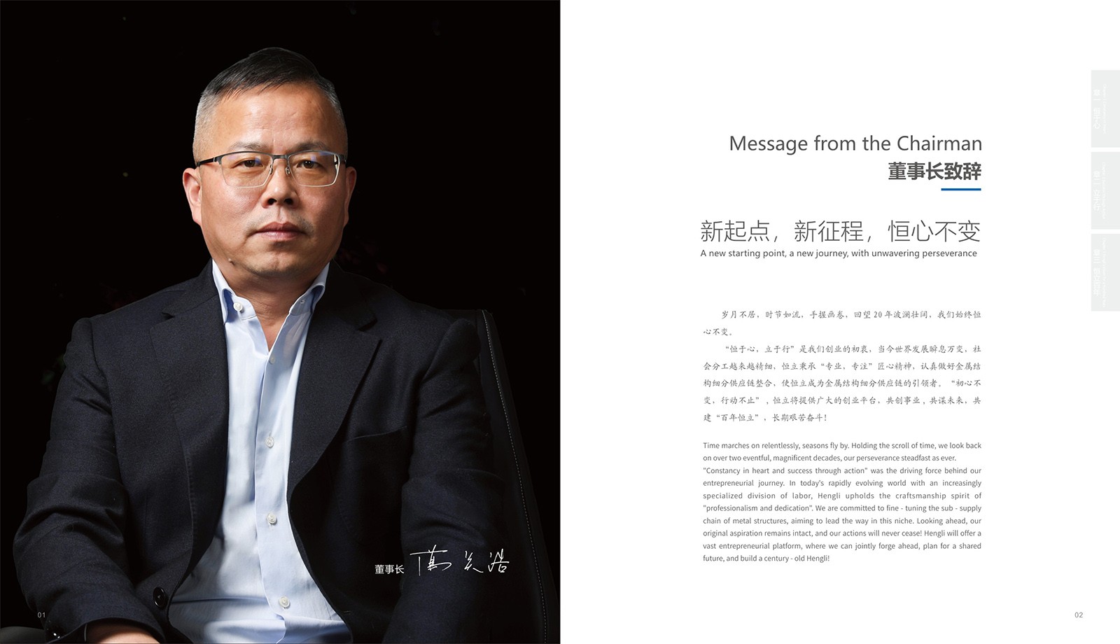 確定設(shè)計要求:設(shè)計團(tuán)隊經(jīng)過與甲方充分溝通,明確畫冊主題、內(nèi)容范圍、風(fēng)格偏好等。以“恒與心,立于行,恒立百年”為核心主題,把畫冊分成三個篇章,在內(nèi)容上會涵蓋公司概況、